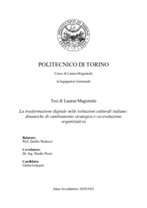 La trasformazione digitale nelle istituzioni culturali italiane: dinamiche di cambiamento strategico e co-evoluzione organizzativa = Digital transformation in Italian cultural institutions: dynamics of strategic change and organizational co-evolution.