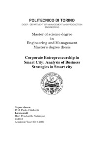 The study aims to analyse strategies in the Smart city for services industries from a Corporate entrepreneurship standpoint and for this purpose will use the concept of Scripts and Schemas and its relationship to corporate strategies to propose a hypothetical Entrepreneurial model as a tool for strategic guidance. For this purpose, I intend to identify smart approaches and contextual strategies adopted across major cities. A detailed analysis of the observed strategies based on various established research papers and case study results will be summarised in the chapters to be followed in the dissertation Factor conditions of well-developed cities are analysed to understand global initiatives. Then important entrepreneurial characteristics and opportunities in the Smart city will be discussed to explore the scope of entrepreneurship. Further, various cases studies around business strategy, corporate strategy, and global leadership allow to understanding of how opportunities are capitalised by innovative means. The outcome of the study is particularly useful for Entrepreneurs/ Start-up firms in its early stage and growing stage as a guidance for development and validation of novel approach. |