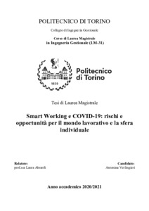 Smart Working e COVID-19: rischi e opportunità per il mondo lavorativo e la sfera individuale = Smart Working and COVID-19: risks and opportunities for the workplace and the individual life.