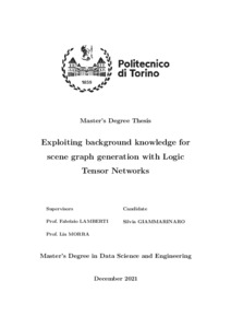 In novel Deep Learning applications, complex models and algorithms are designed to understand the world around us. Every scene we see in real life can be represented as a set of objects and a set of predicates (actions, prepositions, etc.). Starting from these sets, a graph can be defined with objects as nodes and predicates as links. Every relationship between two objects is a triplet (subject, predicate, object). This task is called scene graph generation and it is divided into two phases: first, locate objects and predict their classes (object detection), then create the set of possible triplets (relationship detection). In the last years, this topic has gained considered attention by the research community as it is part of more challenging machine learning problems. In this thesis, the entire scene graph generation pipeline is exploited, focusing first on object detection state-of-the-art and then scene graph generation models. As object detection is already a consolidated task, scene graph generation still has some open problems. One of them are biased annotations: as humans, we have a lot of linguistic biases, some generic words are used more often than specific ones. This bias can be seen in the Visual Relationship Detection (VRD) dataset, where the most frequent predicate is the generic place preposition 'on'. In this case, some predicates carry more information than others. As an example, instead of saying (man, on, chair), it is more accurate to say (man, sitting on, chair). This bias will negatively affect the model, as it will be tempted to use generic predicates in most triplets. To solve this issue, the injection of knowledge into the model can be beneficial. The Logic Tensor Network (LTN) model is considered, in which the training consists of building a knowledge base. The knowledge base is created upon objects and predicates. For objects, bounding boxes coordinates, classes probabilities and geometric features are used. For predicates, a set of positive and negative logical axioms are created starting from the training set distribution. Moreover, LTN introduces the concept of fuzzy logic, the truthiness of a logical expression is measured with a value between zero and one. LTN has demonstrated how the use of a knowledge base can improve the performance in the scene graph generation problem. The purpose of this work is to study the LTN pipeline strengths and weaknesses, starting from the object detection task to the relationship detection. First, the impact of the object detection step on relationship detection is discussed. Wrong object classes and locations can significantly impact the final scene graph. Then, different knowledge bases are used to determine the most promising aggregation of logical axioms. The results show that both phases of the pipeline need to be optimized at their best to obtain good scene graphs. The two main datasets present in the literature are analyzed: Visual Relationship Detection (VRD) and Visual Genome (VG). Both datasets have been used by different models in the literature, so this allows us to study which improvements are more promising for LTN. |