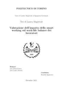Valutazione dell’impatto dello smart working sul work-life balance dei lavoratori = Assessment of the impact of flexible working on work-life balance.