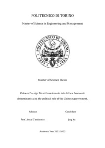 Chinese Foreign Direct Investments into Africa. Economic determinants and the political role of the Chinese government.