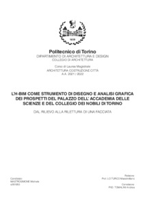 Parole chiave: BIM, H-BIM, Building Information Modeling, Heritage Rapresentation, Digital drawing, Digital Twin, Museo Egizio di Torino, Collegio dei Nobili, Palazzo dell’Accademia delle Scienze
