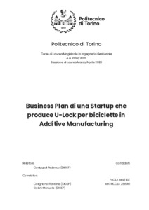 Business Plan di una Startup che produce U-Lock per biciclette in Additive Manufacturing = Business Plan of a Startup Producing U-Locks for Bicycles in Additive Manufacturing.