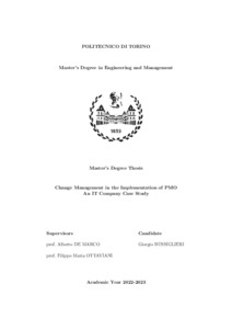 The thesis will be centred on the implementation of the Project Management Office in the Operations department of a small-sized IT Company through a Change Management Model. To begin, a literature review of the Project Management fundamentals and the Change Management approach will be presented. Simultaneously there will be an in depth discussion of the most widespread Change Management Models. Subsequently, out of an as-is analysis of the Operations department of the Organization, the observed criticalities will be addressed through a redesign of the main processes. The to-be scenario will include the Project Management Office among the actors and a new set of tools and software that endeavour to support each phase of the projects lifecycle. In order to shift from the existing procedure to the desired scenario, a strategy that encompasses both the technical side of the Project Management Office implementation and the individual change will be shared. The former is addressed through the up-front planning and scheduling of activities mainly aimed at configuring the affected tools and software; while, the latter deals with the implementation of a tailored framework based on the ADKAR Model and the Agile Methodology principles. The integration between the two sides of the change is constantly guaranteed as a result of the joint activities and the high degree of flexibility, which stem from the framework of the individual change. Subsequently, taking into account the period between the kick-off meeting and the planned halfway point of the transition, the monitoring over the Project Management Office implementation will be provided. Lastly, a retrospective analysis is conducted with respect to the state of the transition and the suggested next steps forward will be provided. |