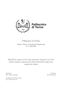 Multi-Body analysis of the elasto-kinematic behaviour of a front double wishbone suspension for Front-Wheel-Drive light-duty commercial vehicles.