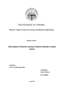 Analisi di rischio per i fenomeni di fuga termica nei veicoli elettrici in spazi confinati (gallerie stradali) = Risk analysis of thermal runaway of electric vehicles in closed spaces.