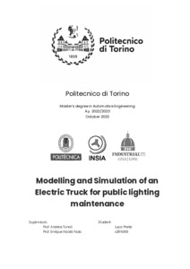 Modelling and Simulation of an Electric Truck for public lighting maintenance.