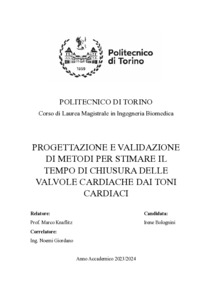 Progettazione e validazione di metodi per stimare il tempo di chiusura delle valvole cardiache dai toni cardiaci = Design and validation of methods to estimate the time of closure of the cardiac valves from heart sounds.