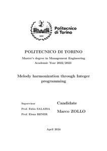 This work presents a model that utilizes exact combinatorial optimization methods to generate the harmonization of a given four-four melody in the key of C major/A from a proposed set of chords. A linear programming formulation has been developed with the objective of identifying the most favorable sequence of chords from a given set. This is achieved by considering a matrix of transition costs based on rules of harmony theory and commonly used chord progressions in Pop music. The resulting musical accompaniment is integrated with the melody and visualized using MuseScore4. To assess the model’s outputs, a comparison has been conducted between the chords used in well-known songs and the chords chosen by the model for those songs. If developed, the proposed model could serve as an educational tool for composers and provide support in discovering new ideas for accompaniment to complement their melodies. |