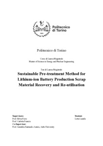 Sustainable Pre-treatment Method for Lithium-ion Production Scrap Material Recovery and Re-utilisation.