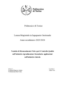 Tecniche di Riconoscimento Visivo per il Controllo Qualità nell'Industria Agroalimentare Secondaria: applicazioni nell'industria vinicola = Visual Recognition Techniques for Quality Control in Secondary Agribusiness: applications in the wine industry.