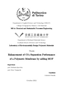 Enhancement of CO2 Separation Performance of a Polymeric Membrane by adding MOF.