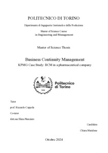 Business Continuity is defined as an organization’s ability to maintain product and service delivery at acceptable levels following a crisis. It is an essential part of business strategy, aimed at ensuring the continuity of operations in case of disruptive events. This thesis is the result of the work done in KPMG Advisory S.p.A. I joined Information Risk Management Team in KPMG Advisory S.p.A. in September 2023, and I have been following this Business Continuity project since April 2024. In this work, I contributed to develop a Business Continuity plan for a Client in the pharmaceutical industry to enhance its Operational and IT Resilience. The paper begins with a general introduction to Business Continuity, including how it has been introduced in companies, its regulatory requirements, and the methodology to be followed to enhance BC. It then analyzes the procect itself and how it has been conducted in the pharmaceutical industry analyzed. This project involved conducting a Business Impact Analysis and Risk Assessment to find potential threats, vulnerabilities, and critical risks. The goal is to provide a plan that provides guidelines and procedures, a plan that allows you to transfer to the customer a methodology to be applied in the management of an emergency. The evaluation and implementation of the plan will then be made complete in the future with specific intervention plans. The Business Continuity plan created in this project led to the development of customized strategies for continuity, which also helped the client align with international standards. As a result of Business Impact Assessment and Risk Assessment, the Client become able to prioritize its weaknesses to introduce new strategies to mitigate risks. Following the completion of the Business Continuity Plan , it can be advantageous for a Company to advance the organization’s resilience and security frameworks by pursuing other objectives, such as GDPR compliance and ISO 27001 certification. |