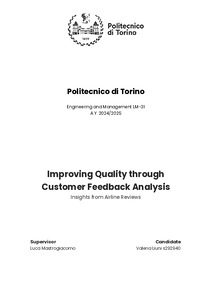 The increasing availability of customer generated data in the airline sector underscores the strategic importance of Customer Feedback Analysis for extracting insights and supporting decision-making processes. For sectors strongly linked to the customers perception of service quality, it is fundamental to understand evolving passenger expectations to remain competitive, and effectively interpret user reviews which play a key role. This thesis focuses on evaluating airline customer satisfaction by leveraging review data collected over a nine-year period, from 2015 to 2023. The main goal of the project was to develop a dashboard using Power BI in order to provide a clear picture of the type of traveller, identify the key factors influencing variations in the overall rating of the airline, highlighting temporal patterns, but also deriving useful insights to improve the service considering different dimensions, such as routes and aircraft types. Using Power BI as the primary Business Intelligence tool, the project involved preprocessing, analyzing, and visualizing user review data. A dashboard was developed to support exploratory analysis and a detailed study of each satisfaction dimension. The dashboard enabled a deeper understanding of passenger perceptions and, in a real life situation, this type of dashboards can provide airline managers with a practical tool for monitoring performance and identifying weaknesses. Future developments proposed in this work include dynamic route categorization and aircraft family grouping to further enhance analytical capabilities. In conclusion, this thesis demonstrates how advanced Customer Feedback Analysis can transform the way of reviewing data. The interactive dashboard created, offers a comprehensive and accessible view of passenger satisfaction trends, helping airlines make informed and timely decisions. |