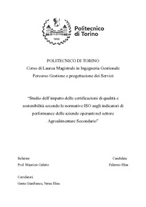 Studio dell’impatto delle certificazioni di qualità e sostenibilità secondo le normative ISO sugli indicatori di performance delle aziende operanti nel settore Agroalimentare Secondario = Study of the impact of quality and sustainability certifications according to ISO standards on the performance indicators of companies operating in the Secondary Agri-food sector.