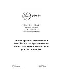 Impatti operativi, prestazionali e organizzativi dell'applicazione dei criteri ESG (in particolare E e G) sulla supply chain di un prodotto industriale.