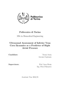 Right Atrial Pressure (RAP) represents a fundamental hemodynamic parameter in the evaluation of cardiac pathologies. However, the gold standard for assessing this parameter remains an invasive measurement. The invasiveness of such techniques limits their routine use, highlighting the need for reliable non-invasive alternatives. The diameter and Caval Index (CI) of the inferior vena cava (IVC), derived from ultrasound imaging, allow an indirect estimation of RAP through semi-quantitative criteria defined by current international guidelines, which classify RAP into three levels (low, intermediate, and high). While these recommendations offer a practical and straightforward approach, their application is often limited by suboptimal precision and reproducibility. Considering these limitations, a dedicated software tool named “VIPER” has been developed. This semi-automatic algorithm is capable of accurately tracking the borders of the IVC, from which it extracts key parameters: vessel diameter, CI, Respiratory (RCI) and Cardiac (CCI) Caval Index. In this thesis, two different algorithms of VIPER software, one developed on Matlab and one on Python, were employed to analyse and segment the IVC from ultrasound video recordings provided by expert clinicians at the Fondazione Toscana Gabriele Monasterio, Pisa. No statistically significant differences were observed between the two software tools for either diameter or CI measurements, confirming the consistency and reproducibility of the automated software. The IVC diameters measured by the operator had a mean value of 17.24 ± 4.03 mm, while the automated estimates obtained from the Python and Matlab algorithms reported mean values of 15.89 ± 5.20 mm and 16.13 ± 5.44 mm, respectively. Similarly, the CI computed from the Python software yielded a mean of 0.31 ± 0.16, compared to 0.28 ± 0.16 from the Matlab-based version. The study population consists of 37 patients (16 males and 21 females) with a mean age of 67.49 ± 16.81 years. For each subject, a comprehensive set of clinical, echocardiographic and invasive variables were available, along with additional features extracted by the two software tools. Notably, invasive measurements were excluded from the dataset to preserve the non-invasive nature of the prediction. A range of linear and non-linear classification models was implemented with the aim of assigning each patient to a RAP class. Among these, the best-performing approach was a meta-classifier trained using features extracted by the Matlab version of VIPER. This model integrates the predictions of two base classifiers: a linear Ridge model and a non-linear Support Vector Machine (SVM). The meta-classifier achieved an accuracy of 73%, as estimated through Leave-One-Out Cross-Validation (LOO-CV). The same meta-classifier architecture, when applied to features derived from the Python version of VIPER, achieved a LOO-CV accuracy of 65%. In comparison, when using the operator-measured diameter, the standard guideline-based assessment methods achieved a lower accuracy of 54%, suggesting that algorithmic approaches may offer a more reliable support for non-invasive RAP assessment and may represent a promising advancement in clinical practice. |