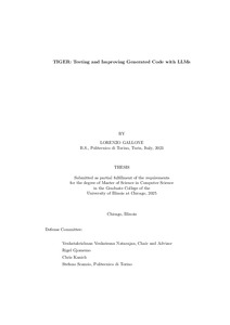 This thesis presents TIGER, a test-driven and documentation-guided framework designed to improve the functional reliability of Python code generated by Large Language Models (LLMs) in realistic software development settings. Unlike conventional approaches that often expose models to ground-truth implementations or rely on synthetic benchmarks, TIGER operates in a constraint-rich environment that better simulates the experience of human developers: the model is given access only to high-level natural language artifacts—such as README files, reStructuredText documentation, and function docstrings—and is guided solely by the results of automated test execution. The LLM is never allowed to see any reference implementation of the target functions. At the core of TIGER lies an iterative refinement process. Given a natural language prompt built from documentation and structural metadata extracted from a repository, the LLM generates an initial implementation of a target function. This function is then dynamically inserted into the codebase and evaluated against its associated test suite. If test failures occur, the system automatically extracts a summary of the errors—using either a rule-based or model-based method—and incorporates this feedback into a revised prompt. The LLM is invoked again to produce an improved version of the function. This cycle continues until the function passes all tests or a maximum number of iterations is reached. A single-pass version of the system is also implemented to serve as a baseline for evaluating the added value of the iterative strategy. The system has been evaluated across ten real-world Python repositories of varying size and complexity. These repositories were selected for their inclusion of rich documentation and comprehensive test suites. The experiments compare the effectiveness of two different LLMs— Gemini 2.0, a general-purpose model, and QwenCoder 2.5 Instruct, optimized for code generation—using both single-pass and iterative configurations. Results demonstrate that iterative refinement consistently improves the success rate of code generation, particularly in repositories involving structural complexity, indirect test coverage, or domain-specific logic. On average, functions required fewer than two iterations to converge, and performance gains were achieved without modifying the underlying LLM weights or architectures. Furthermore, TIGER incorporates a modular architecture that enables scalable analysis of large repositories, mapping functions to test cases through static code analysis and call graph propagation. Prompt generation is structured to preserve semantic consistency and contextual relevance, with special handling for class-based functions and internal dependencies. The system also includes mechanisms for error summarization and logging, enabling transparent and reproducible evaluation. Overall, this work demonstrates that LLMs can evolve from static, one-shot generators into adaptive, test-driven agents capable of producing functionally correct and maintainable code. By combining structured prompting, automated testing, and iterative feedback—without relying on fine-tuning or external supervision—TIGER offers a lightweight yet powerful framework for integrating LLMs into practical software engineering workflows. It also lays the groundwork for future research on hybrid human-AI development pipelines, robust error handling strategies, and context-aware prompt engineering for code synthesis at scale. |