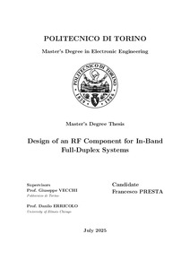 Design of an RF Component for In-Band Full-Duplex Systems.