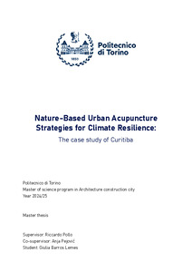 L'aumento della popolazione urbana, che dal 2007 rappresenta la maggioranza globale, ha trasformato gli scenari delle città in principali contributori alla crisi climatica. L'intensificazione dell'attività umana e delle costruzioni, insieme alla perdita di aree naturali, ha un impatto diretto sui microclimi locali, portando all’emergere di fenomeni come le isole di calore urbane. Di conseguenza, le popolazioni urbane in crescita sono esposte a rischi climatici maggiori, mentre le città diventano sempre più vulnerabili agli eventi meteorologici estremi. In risposta all’urgente necessità di strategie di mitigazione e adattamento, questa ricerca adotta Curitiba come caso di studio per valutare la fattibilità e l’efficacia della metodologia di agopuntura urbana integrata con le Soluzioni Basate sulla Natura (Nature-Based Solutions – NBS), con un’enfasi sulla riduzione degli effetti delle ondate di calore e con attenzione anche ai co-benefici legati ad altre sfide climatiche urbane. Strutturata in tre parti, la tesi inizia con un inquadramento teorico ancorato ai principi dell’Agenda 2030, agli Obiettivi di Sviluppo Sostenibile e ai concetti centrali relativi al clima urbano, al microclima e alle strategie urbane sostenibili. La seconda parte presenta un’analisi comparativa di tre casi studio che applicano le NBS attraverso interventi specifici e strategici, spesso associati all’approccio dell’agopuntura urbana, evidenziando i risultati ottenuti e il potenziale di replicabilità in città con condizioni climatiche simili. Infine, la terza parte è dedicata al caso studio di Curitiba. Viene condotta un’analisi delle vulnerabilità climatiche e ambientali della città, permettendo l’individuazione delle aree prioritarie per gli interventi. A tale scopo, i quartieri di Centro e Rebouças vengono scelti come aree di interesse. All'interno di questi quartieri, vengono individuati 24 tratti stradali come potenziali siti per l’implementazione dell’agopuntura urbana. Da questo elenco, quattro siti vengono selezionati come proposte pilota per valutare l’efficacia e la fattibilità di soluzioni basate sulla natura e a benefici multipli già attuate in contesti europei. Queste strategie mirano a migliorare il comfort termico, mitigare gli effetti delle ondate di calore e promuovere la resilienza urbana. La loro valutazione è condotta attraverso simulazioni microclimatiche con il software ENVI-met, analizzando variabili come la temperatura potenziale dell’aria, la temperatura superficiale, la velocità del vento e i valori PET (Temperatura Equivalente Fisiologica). L’obiettivo del progetto è utilizzare gli interventi pilota come linee guida per altri contesti, contribuendo allo sviluppo di strategie adattabili e replicabili. Inoltre, si propone di supportare il processo decisionale nella pianificazione urbana, raccomandando politiche allineate alle agende globali di sostenibilità che affrontino efficacemente le sfide climatiche locali. |