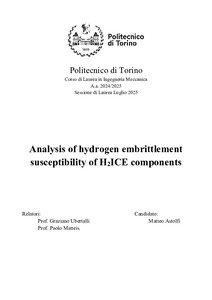 Analysis of hydrogen embrittlement susceptibility of H2ICE components.