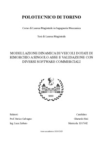 Modellazione dinamica di veicoli dotati di rimorchio a singolo asse e validazione con diversi software commerciali = Dynamic modeling of vehicles equipped with single-axle trailer and validation with various commercial software.