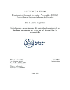 Modellazione e progettazione del controllo di pressione di un impianto pneumatico per prove su valvole antighiaccio aeronautiche. = Modeling and Pressure Control Design of a Pneumatic System for Testing Aircraft Anti-Ice Valves.