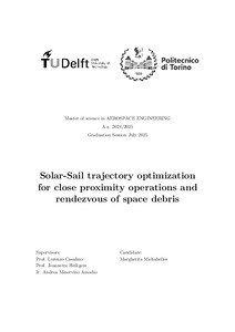 Active debris removal (ADR) is recognized as one of the most effective strategies to address the ever-increasing problem of space debris. This thesis highlights the potential of solar sailing as a propellant-free propulsion method that offers an unlimited ΔV budget suitable for multiple debris removal missions. Traditional proximity operations are considered and their feasibility when using a solar sail is established for Low Earth Orbit (LEO) scenarios where space debris density is higher. Given the unique dynamics of solar sails, the study explores alternative trajectories such as Hold trajectories and Walking Safety Ellipses for target inspection, which improve passive safety by maintaining a collision-free path even in the event of sail failure. The transfer from a far-range phase point to an Inspection Loop is then examined. GPOPS-II, a software based on direct collocation methods, is employed to optimise these trajectories and to evaluate the effectiveness of these methods in addressing optimisation challenges specific to close-proximity operations. The results demonstrate that the proposed Hold and Inspection Loop Trajectories enable a safe approach to target debris, potentially reducing overall ADR mission costs due to the sailcraft’s propellantless nature. |
