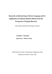 Research on Informal Space Pattern Language and Its Application in Nanhuaxi Historic District from the Perspective of Organic Renewal.