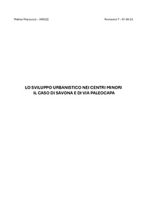 LO SVILUPPO URBANISTICO NEI CENTRI MINORI: IL CASO DI SAVONA E DI VIA PALEOCAPA.