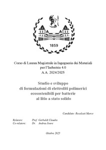 Studio e sviluppo di elettroliti polimerici ecosostenibili per batterie al litio a stato solido = Study and development of environmentally sustainable polymer electrolytes for solid state lithium batteries.