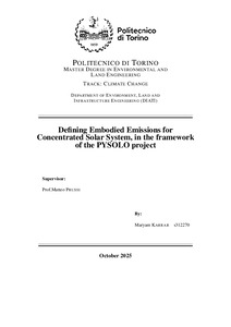 Defining Embodied Emissions for Concentrated Solar System, in the framework of the PYSOLO project.