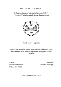 Approcci decisionali in ambito imprenditoriale e i loro effetti sui meccanismi di pivot, focus su opportunity recognition e value creation = Decision-making approaches in entrepreneurship and their effects on pivot mechanisms: a focus on opportunity recognition and value creation.