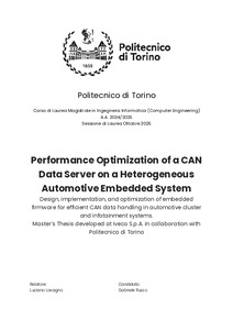 La rapida evoluzione delle architetture elettroniche automobilistiche, guidata dalla crescente diffusione dei sistemi di infotainment e dei cruscotti digitali, ha portato a un significativo aumento della quantità di dati scambiati tra le Electronic Control Units (ECU) e alla transizione verso hardware più potenti, come gli High Performance Computers (HPC). Nonostante l’introduzione di nuove tecnologie, il Controller Area Network (CAN) rimane il protocollo di comunicazione predominante, richiedendo soluzioni firmware efficienti per garantire bassa latenza e prestazioni affidabili. La presente tesi descrive la progettazione, l’implementazione e l’ottimizzazione di firmware embedded per la gestione dei dati CAN su piattaforme automotive eterogenee, composte da microcontrollori con sistemi operativi real-time hard e microprocessori con sistemi operativi automotive di tipo general-purpose. Il lavoro comprende lo sviluppo di un codec CAN, l’integrazione del firmware con applicazioni di più alto livello tramite meccanismi efficienti di serializzazione dei dati e la valutazione delle prestazioni su diverse piattaforme hardware. L’analisi mette in evidenza i principali colli di bottiglia, come l’allocazione dinamica della memoria, la comunicazione tramite memoria condivisa e l’overhead dovuto alle attività di debug. Sono state applicate strategie di ottimizzazione che hanno portato a una riduzione dei tempi di esecuzione, a una maggiore stabilità e a un utilizzo più efficiente delle risorse, come dimostrato attraverso risultati prestazionali esemplificativi. Le conclusioni delineano il contributo di questo lavoro nel migliorare l’affidabilità e la scalabilità dei sistemi di comunicazione veicolari e discutono i possibili sviluppi futuri. |