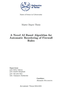 Packet filtering firewalls are the backbone of every modern network infrastructure; however, increasing demands for network efficiency pose significant challenges. As security policies grow and evolve in both number and complexity, the order in which rules are organized within the firewall often emerges as a critical performance bottleneck. This thesis tackles the reordering problem with the goal of improving packet processing time while preserving the original security semantics. We frame rule ordering as a sequential decision task and adopt Reinforcement Learning to obtain an adaptive, data-driven reordering that follows live traffic. In particular, we implement a lightweight tabular Q-Learning agent that balances exploration and exploitation and continuously adjusts the relative priority of rules as the distribution of flows changes over time. Moreover we adopt two deployment variants: the first one is an integrated smart firewall , where the learning agent runs alongside the filtering engine and updates the rule order continuously as packets arrive; the second one is a digital twin composition, in which a learning agent observes the same packet stream in parallel, periodically proposes an optimised permutation of the existing rules, and a conventional firewall enforces decisions. Two deployment models are studied. The first is an integrated smart firewall, where the learning agent runs alongside the filtering engine and updates the rule order continuously as packets arrive. The second is a digital twin composition: a learning agent observes the same packet stream in parallel, periodically proposes an optimised permutation of the existing rules, and a conventional firewall enforces decisions. This separation keeps enforcement simple and auditable while allowing ongoing optimisation on a controlled cadence. We compare these models on two primary outcomes: packet processing latency, the time required to process a fixed batch of packets, and the incidence of misses, packets handled suboptimally due to order. The results reveal a clear trade-off: the digital twin achieves lower latency, while the smart firewall shows fewer misses. Overall, the study demonstrates that adaptive reordering via Reinforcement Learning is a practical and effective way to accelerate packet filtering without altering policy semantics. |
