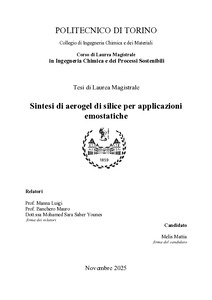 Sintesi di aerogel di silice per applicazioni emostatiche = Synthesis of silica aerogels for hemostatic applications.