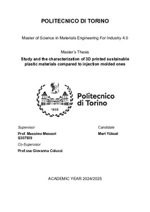 Studio e caratterizzazione dei materiali plastici sostenibili stampati in 3D rispetto a quelli stampati a iniezione = Study and the characterization of 3D printed sustainable plastic materials compared to injection molded ones.
