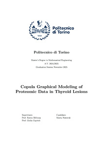 Thyroid nodules are a common occurrence in the general population, yet preoperative assessment of malignancy often remains inconclusive. This uncertainty can lead to surgical decisions that later may prove unnecessary. Identifying potential molecular biomarkers could refine diagnosis and support more informed care. In this setting, proteomic profiling with Matrix Assisted Laser Desorption Ionization Mass Spectrometry Imaging (MALDI-MSI) has shown promise for characterizing tissue at the molecular level. This thesis presents a comparative statistical study of MALDI-MSI proteomic data from thyroid biopsies classified into five diagnostic categories: Follicular Adenoma, Hürthle Cell Adenoma, Papillary Thyroid Carcinoma (PTC), Follicular Variant of Papillary Thyroid Carcinoma (FVPTC), and Noninvasive Follicular Thyroid Neoplasm with Papillary-like Nuclear Features (NIFTP), a recently defined and diagnostically challenging entity. The analysis compares univariate and multivariate statistical approaches to explore molecular differences between diagnostic groups. Elastic Net regression and sparse Partial Least Squares Discriminant Analysis (sPLS-DA) are employed as supervised methods for feature selection and discrimination among diagnostic groups. In contrast, a Copula Graphical Model for Heterogeneous Data is applied in this proteomic setting to characterize conditional dependencies among molecules and to explore how network structure may inform feature relevance across diagnostic categories. The thesis compares the molecules identified by different methods, examining their recurrence across approaches to highlight patterns that may be of interest for future clinical studies. |