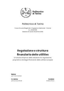 Regolazione e struttura finanziaria delle utilities. 1. INTRODUZIONE??1 2. UTILITIES E REGOLAZIONE??3 2.1 IL MERCATO EUROPEO DELLE UTILITIES: CONFRONTO TRA REGNO UNITO ED EUROPA CONTINENTALE??4 2.2 ALTRI CASI DEGNI DI NOTA??8 2.3 SFIDE CONTEMPORANEE PER LE UTILITIES: LA TRANSIZIONE ENERGETICA??10 2.4 LA REGOLAZIONE ECONOMICA DELLE UTILITIES??13 2.4.1 Architettura istituzionale, Governance e Processi decisionali??14 2.4.2 Metodi di determinazione delle tariffe??17 2.4.3 La teoria della Regulatory Capture??19 2.4.4 Cicli politici e dinamiche temporali nella regolazione tariffaria??20 3. LA STRUTTURA FINANZIARIA DELLE UTILITIES??22 3.1 FONDAMENTI TEORICI DELLA STRUTTURA DEL CAPITALE??23 3.1.1 Teorie classiche: Modigliani-Miller, trade-off theory, pecking order theory??23 3.1.2 Limiti delle teorie classiche e interdipendenza tra struttura del capitale e regolazione??24 3.2 LE IMPRESE REGOLATE E LA FORMAZIONE DEL WACC??26 3.2.1 Caratteristiche economico-finanziarie delle utilities??26 3.2.2 Il WACC come strumento regolatorio??28 3.2.3 Interazione tra struttura del capitale e WACC??29 3.3 IMPLICAZIONI FINANZIARIE NEL CONTESTO REGOLATO E RISCHI EMERGENTI??30 3.3.1 Gestione del rischio finanziario nelle utilities: le margin call??30 3.3.2 La transizione energetica e la nuova finanza regolata??33 4. SETTORI E AREE GEOGRAFICHE ANALIZZATE??36 4.1 I SETTORI DELLE UTILITIES: DISTINZIONE TRA SETTORI REGOLATI E NON??36 4.1.1 Settore NACE 35: Fornitura di energia elettrica, gas, vapore e aria condizionata??36 4.1.2 Settore NACE 36: Raccolta, trattamento e fornitura di acqua??38 4.1.3 Settore NACE 37: Gestione delle reti fognarie??39 4.1.4 Settore NACE 38 e 39: Attività di raccolta, trattamento e smaltimento dei rifiuti??40 4.1.5 Settore NACE 491, 493 e 495: Trasporti ferroviari interurbani e terrestri??41 4.1.6 Settore NACE 53: Servizi postali e attività di corriere??42 4.1.7 Settore NACE 61: Telecomunicazioni??44 4.1.8 Quadro definitivo dei settori analizzati??44 4.2 AREE GEOGRAFICHE ANALIZZATE: DEFINIZIONE DEL PERIMETRO DI ANALISI??44 4.2.1 Gli stati EU-15 e l’anno di istituzione della prima IRA??45 4.2.2 Gli Stati europei extra EU-15 e anno di istituzione della prima IRA??50 4.3 DATASET FINALE??53 4.4 PREVISIONI TEORICHE??54 5. ANALISI DESCRITTIVA??57 5.1 INTRODUZIONE ALLA PRIMA ANALISI E VARIABILI CONSIDERATE??58 5.1.1 Variabile dipendente: Market Leverage??58 5.1.2 Variabili esplicative??61 5.1.3 Variabili di controllo aziendali??64 5.1.4 Variabili di controllo macroeconomiche??70 5.1.5 Effetti fissi e struttura dell’errore??71 5.2 INTRODUZIONE ALLA SECONDA ANALISI E VARIABILI CONSIDERATE??71 5.3 STATISTICHE DESCRITTIVE??73 6. ANALISI DI REGRESSIONE??75 6.1 VERIFICA DELLA PRIMA IPOTESI: PROPRIETÀ, REGOLAZIONE E LEVA FINANZIARIA??76 6.1.1 Analisi descrittiva preliminare??79 6.1.2 Stima della regressione e analisi dei risultati??82 6.1.3 Introduzione della variabile Political Orientation Index??87 6.1.4 Analisi settoriale: confronto tra settori??89 6.1.5 Analisi temporale: confronto fra periodi storici??93 6.1.6 Analisi comparata tra stati dell’ex EU-15 e i Paesi extra ex EU-15??98 6.2 VERIFICA DELLA SECONDA IPOTESI: RELAZIONE DINAMICA TRA LEVA E PREZZI REGOLATI??100 6.2.1 Stima della regressione e analisi dei risultati??103 6.2.2 Analisi temporale: confronto fra periodi storici??103 7. CONCLUSIONE??104