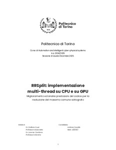 RRSplit: implementazione multi-thread su CPU e su GPU = RRSplit: multi-threaded implementation on CPU and on GPU.
