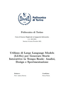 Utilizzo di Large Language Models (LLMs) per Generare Storie Interattive in Tempo Reale: Analisi, Design e Sperimentazione = Using Large Language Models (LLMs) to Generate Real Time Interactive Stories: Analysis, Design, and Experimentation.