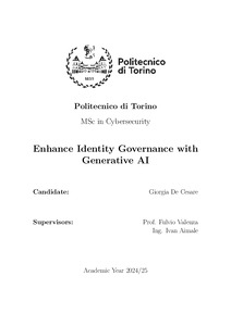 ENHANCE IDENTITY GOVERNANCE WITH GENERATIVE AI L'Identity Governance rappresenta una tematica cruciale per minimizzare i rischi associati alla gestione degli accessi e alla profilazione dei dipendenti. Questo ambito richiede la gestione di grandi volumi di dati e implica un notevole sforzo nell'implementazione e nella gestione delle soluzioni. In questo contesto, il progetto di tesi si propone di analizzare e testare l'applicazione della Generative AI, con un focus specifico sull'implementazione di uno strumento per automatizzare le operazioni IGA solitamente gestite dal supporto di primo livello. Le attività previste includono: · Analisi dettagliata delle potenziali applicazioni della Generative AI nella gestione delle operazioni di Identity Governance. · Sviluppo di un ambiente di laboratorio in cui replicare gli scenari individuati nella fase precedente. · Valutazione dei vantaggi in termini di riduzione del carico di lavoro e ottimizzazione dei costi con l'uso della generative AI |