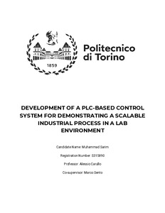A significant gap often exists between the theoretical knowledge of industrial automation taught in universities and the practical skills required in the field. To address this challenge, this thesis presents the complete development of a Programmable Logic Controller (PLC) based control system designed to demonstrate a scalable industrial process within a laboratory environment. The project's core is a lab-scale sheet stamping machine, realized through the integration of a Siemens S7-1200 PLC, a KTP700 Human-Machine Interface (HMI), a DC geared motor, a solenoid actuator and an industrial incremental rotary encoder with a resolution of 600 Pulses Per Revolution (PPR) coupled with a measurement wheel, having a circumference of 250 mm. This measurement setting provides a linear resolution of approximately 0.42mm/pulse that was determined to be sufficient for the project’s performance goals of ±10 mm positional accuracy and ± 5mm of repeatability. The system automates the process of feeding a paper sheet and stamping it at user-defined intervals. The operator uses the HMI that serves as a monitoring and control panel for this automated system. Its intuitive touch interface design allows the user to monitor real-time process data, fault alarms and to set process parameters defined by the desired length of interval that must be passed between each consecutive stamp and the desired number of total stamps that must be made before the automated cycle ends. The PLC utilizes these set points to execute its control logic, while tracking the sheet’s linear travel by processing the encoder's pulse count. This thesis documents the complete engineering workflow, from defining the system requirements and selecting components, to the mechanical design in SolidWorks, configuration of the UltiMaker Cura Software for converting the designed model into a 3D-printer compatible G-Codes, which were optimized for quality and time consumption and the resulting mechanical 3D printed fabrication, electrical connections, PLC and HMI software development in TIA Portal, and final system testing and performance calibration. The control program, implemented in Ladder Logic, features position tracking using the PLC's high-speed counter, synchronized motor and actuator control, and the implementation of fault detection algorithms for feed roller and stamp actuator, based on the encoder data and the current feedback of the solenoid stamp actuator respectively. The resulting platform functions as a successful proof-of-concept for an industrial automated stamping system and serves as a valuable and flexible educational tool. It provides students with a hands-on opportunity to engage with industrial hardware and immediately observe the impact of their changes. A set of guided lab assignments could be developed for students that could include different tasks, such as implementing a new fault detection routine, designing a more intuitive HMI display with alarm history, optimizing the control logic for higher throughput, effectively bridging the gap between academic theory and practical engineering applications. |