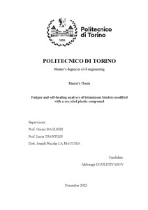 Fatigue and self-healing analyses of bituminous binders modified with a recycled plastic compound.