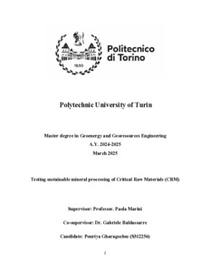 Recupro di CRM mediante processi di trattamento sostenibili = Testing sustainable mineral processing of CRM.
