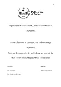 Static and dynamic model of a real hydrocarbon reservoir for future conversion to underground CO2 sequestration.