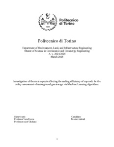 Studio dei principali aspetti che influenzano l'efficienza della roccia di copertura per la valutazione della sicurezza dello stoccaggio sotterraneo di gas tramite algoritmi di Machine Learning = Investigation of the main aspects affecting the sealing efficiency of cap rock for the safety assessment of underground gas storage via Machine Learning algorithms.
