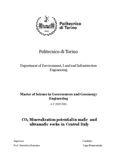 CO2 Mineralization potential in mafic and ultramafic rocks in Central Italy.