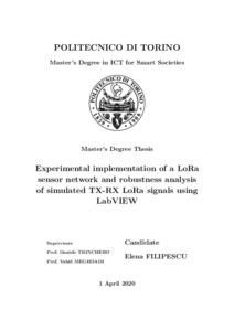 Experimental implementation of a LoRa sensor network and robustness analysis of simulated TX-RX LoRa signals using LabVIEW.